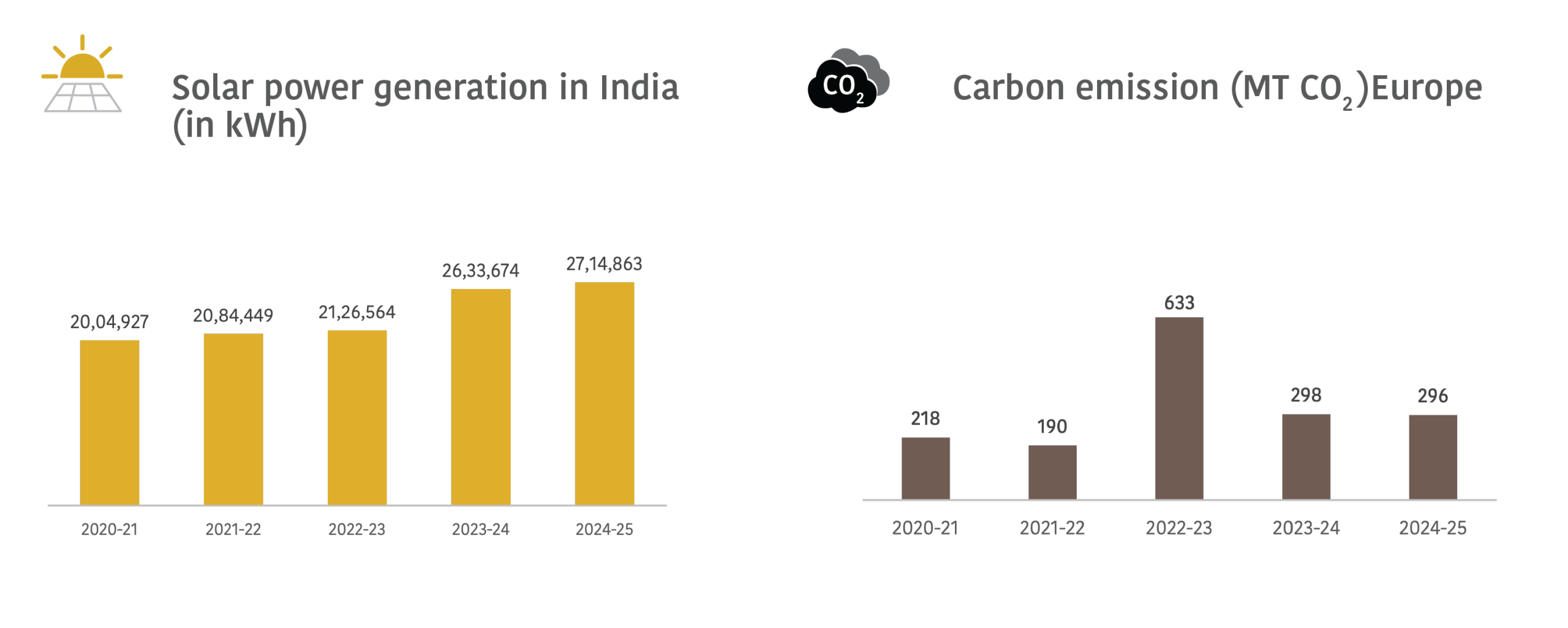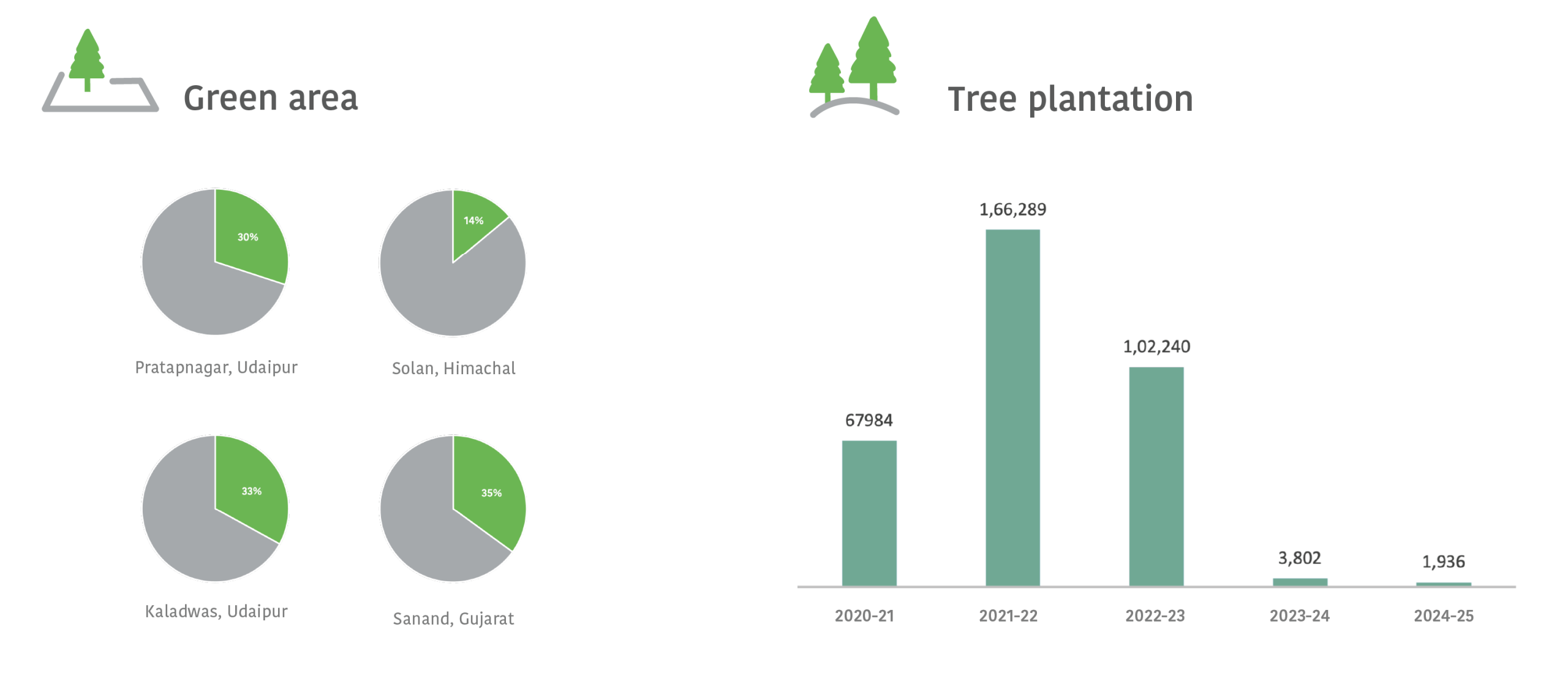 We understand water is a scarce resource and must be used optimally. We harvest rainwater in all our major operation sites in India for gardening purposes. Waste water is treated in three of our manufacturing plants for garden use. Last year we treated over 1,500 kilolitres of water. At our largest plant, we purify and recirculate used water for flushing. Our manufacturing processes do not need water, so we consume recycled water for gardening, human use and consumption. We have low-flow water fittings installed in our company-owned premises.